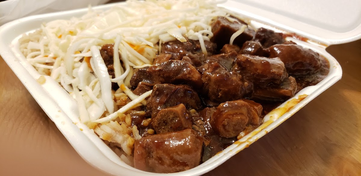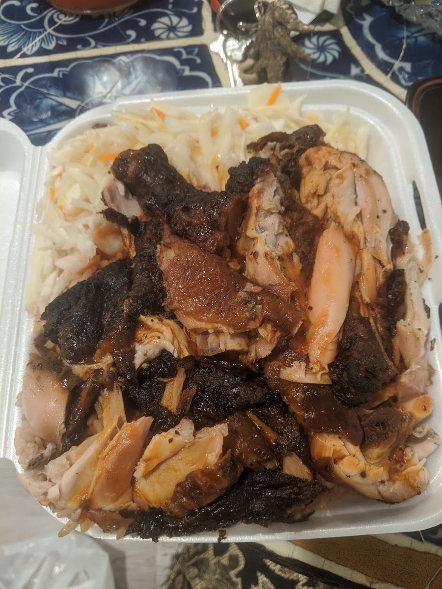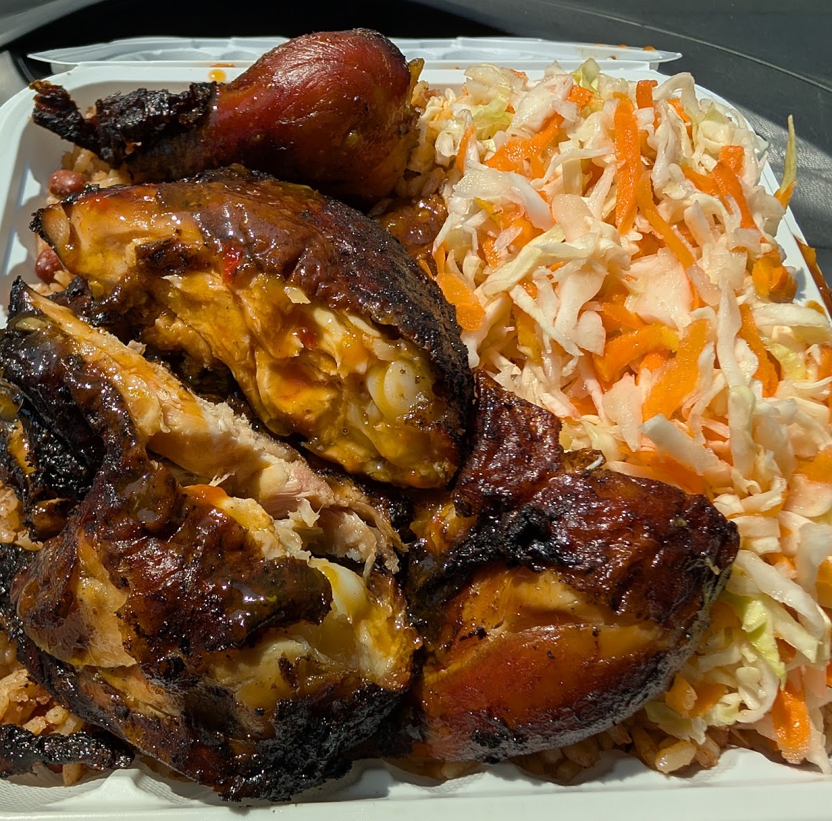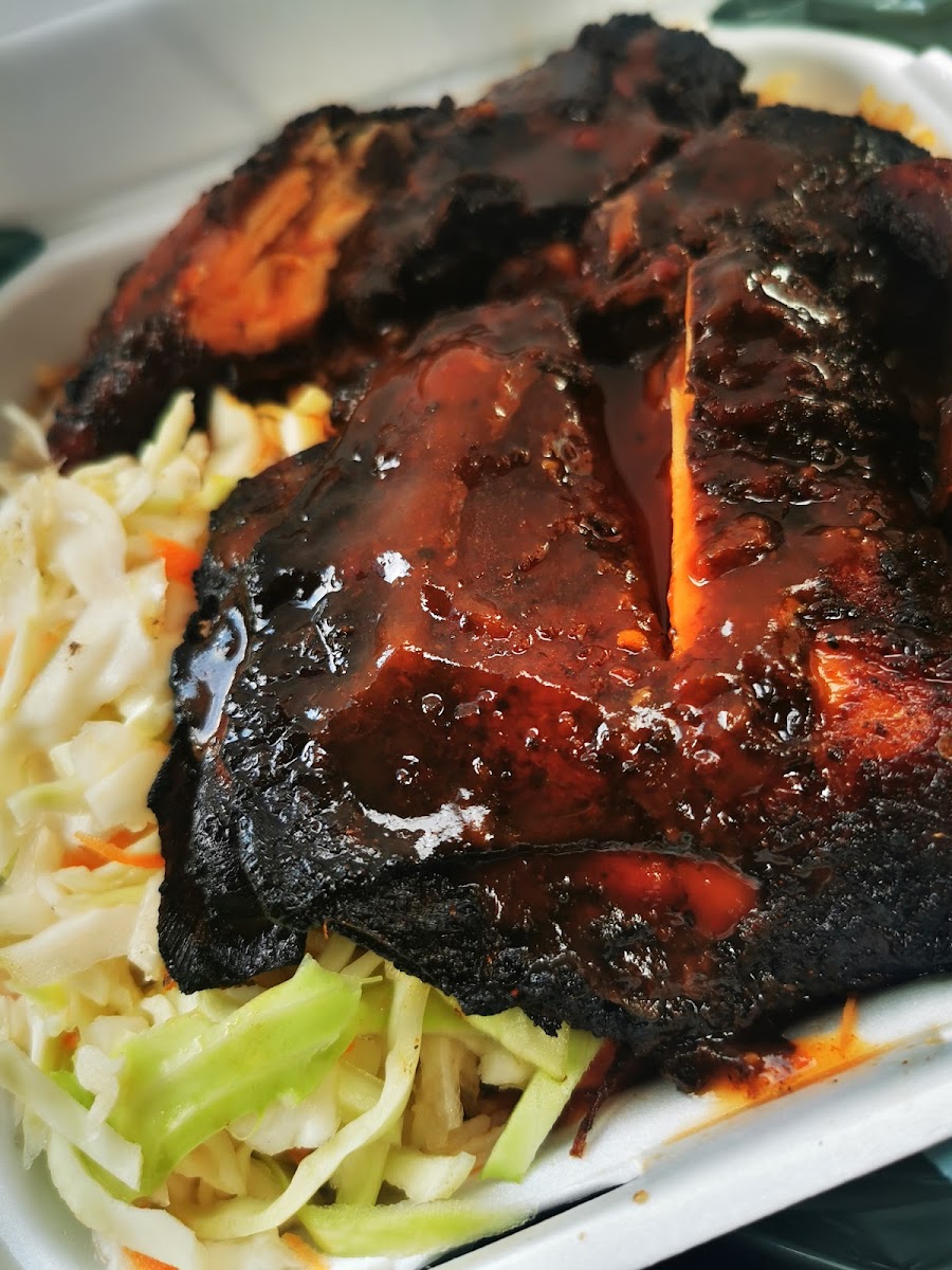 The food is not disappointing, especially if you can eat it right away when it’s hot and just removed from the smoker. However, the dining space's atmosphere and ventilation make it uncomfortable to sit in. The Jerk chicken is good and portions are enormous, but it could be more flavourful, particularly the coleslaw and the rice.